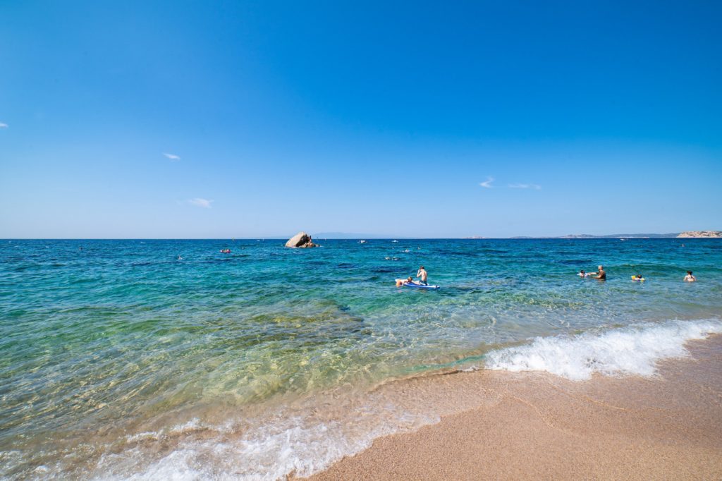 La spiaggia è adiacente al villaggio e vi si accede direttamente senza attraversare strade.